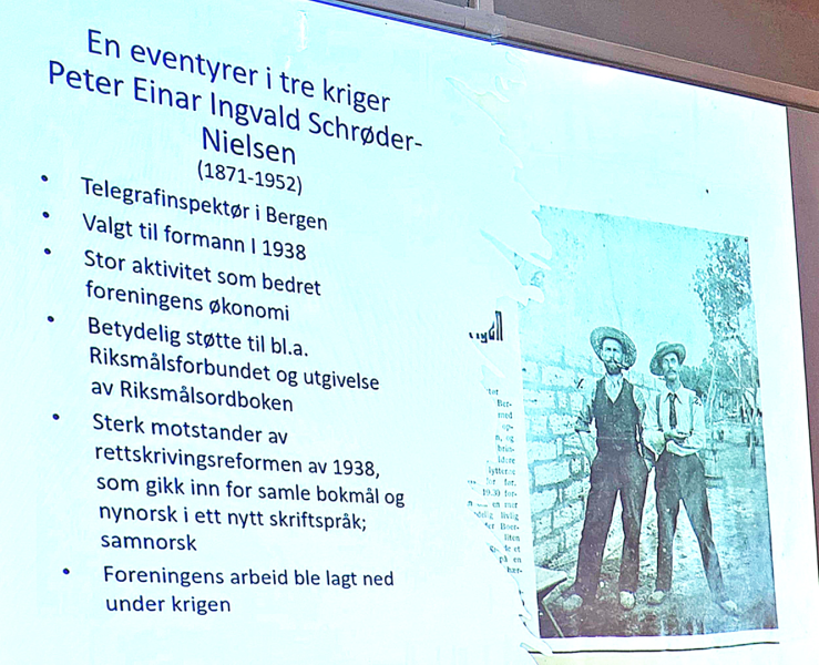 Fredrik Mehn-Andersen holdt et foredrag om Bergen Riksmålsforening (BRF).